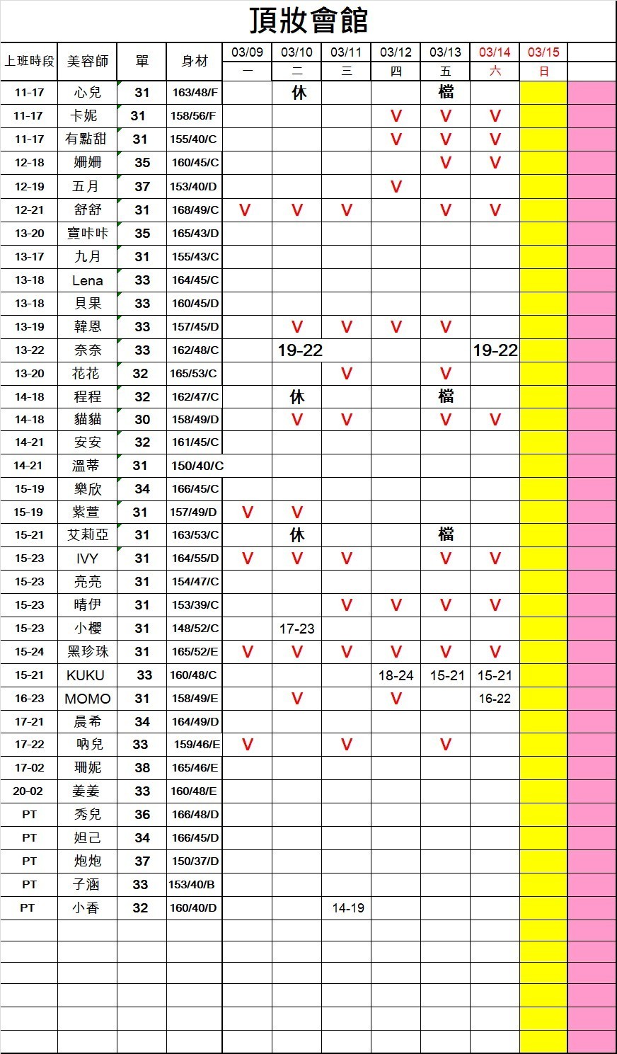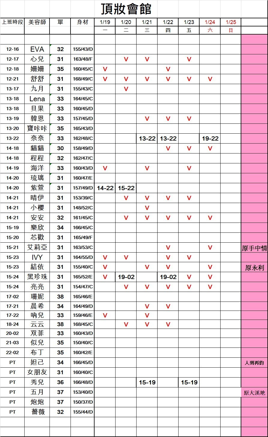 頂妝館以年輕、活潑、多元的美容師陣容自豪。無論您喜歡可愛清純或是輕熟重服務的類型,這裡都有適合您的美容師。我們保證,您一定能找到心儀的伴侶,度過美好時光。